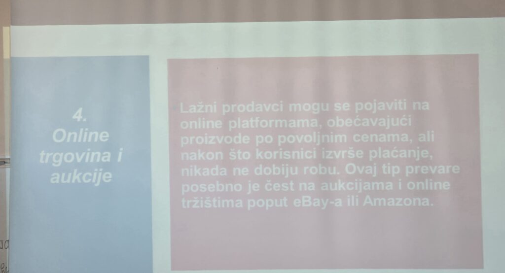 Професорка Јелена Радојичић 26.02.2026. године заједно са ученицима обележила је Дан безбедности на интернету. На предавању је било речи о интернет преварама и начинима како се најефикасније заштитити од њих. Ученици су активно учествовали у дискусији и показали велико интересовање за тему.