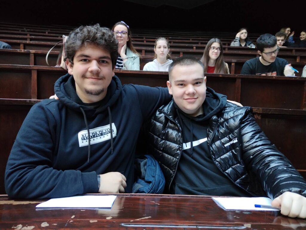 Са задовољством вас обавештавамо да су наши ученици, Андре Петрус Кивитс и Урош Јагодић, ученици трећег и четвртог разреда, учествовали на окружном такмичењу из енглеског језика, које је одржано на Филолошком факултету у Београду 8. марта 2026. године. Њихово учешће на овом такмичењу представља понос наше школе. Честитамо им на труду и посвећености.